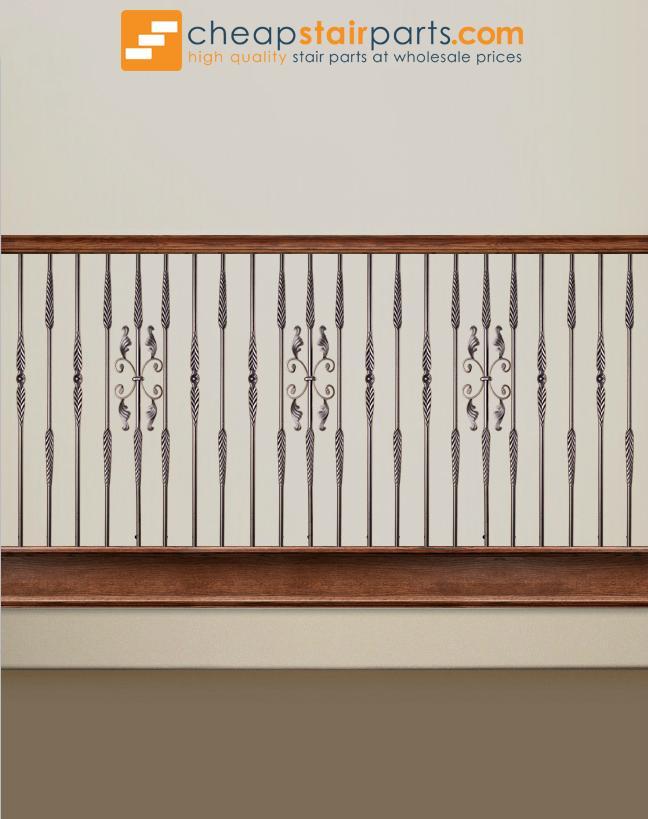 The 16.1.18 Round series iron baluster features two 7″ feathered ornament. This baluster is solid wrought iron and is 9/16″ round on the ends. It uses the shoes for the nine sixteenth inch balusters 16.3.13 and 16.3.16. This plain baluster pairs with all other Round series balusters.