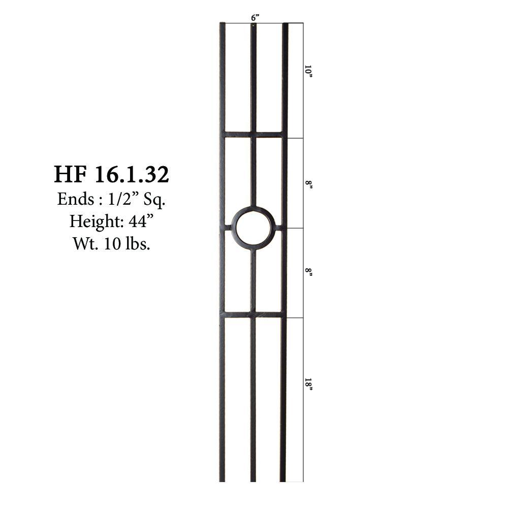 The 16.1.32 is a three legged iron panel that features a single 4″ ring. This panel is solid wrought iron and is 1/2″ square. This single ring panel pairs with all other half inch products.