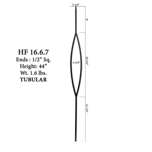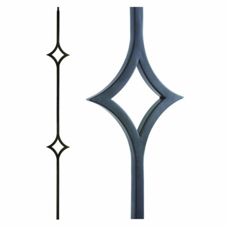 The 16.6.7 is an iron baluster that features a 20-3/4″ single Marquis Modern design. This baluster is hollow wrought iron and is 1/2″ square. Pairs with Aalto and Versatile series iron balusters.