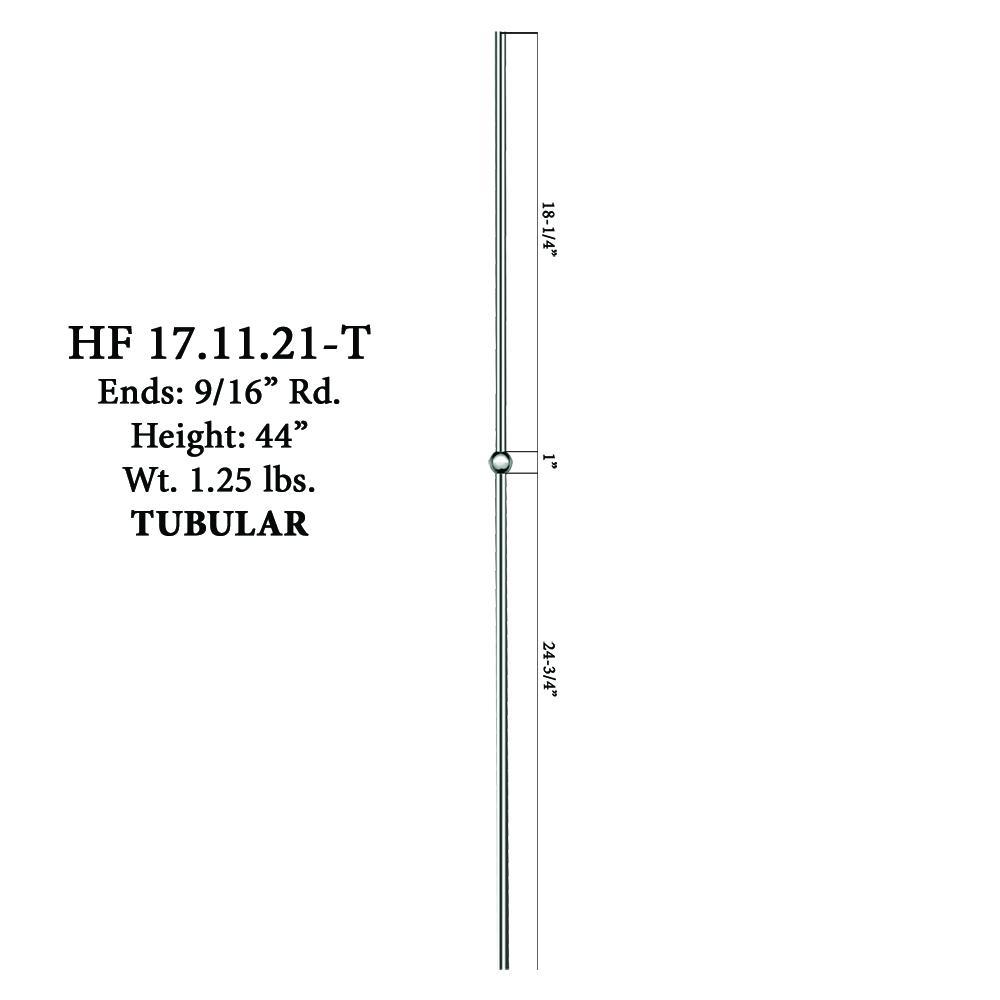 The 17.11.21-T stainless steel baluster features a single 1″ sphere. This baluster is hollow stainless steel and is 9/16″ round on the ends. It uses the shoes for the nine sixteenth inch stainless balusters 17.11.22. This plain baluster pairs with all other components from the stainless steel collection.