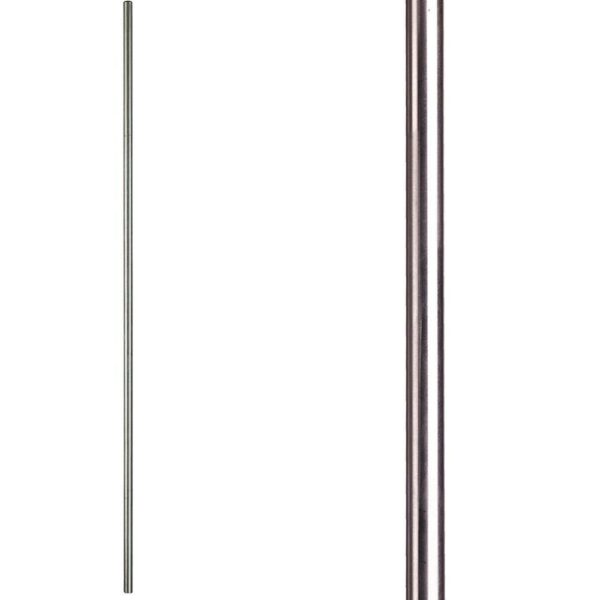 The 17.11.5-T stainless steel baluster features a plain round forged bar. This baluster is hollow stainless steel and is 9/16″ round on the ends. It uses the shoes for the nine sixteenth inch stainless balusters 17.11.22. This plain baluster pairs with all other components from the stainless steel collection.