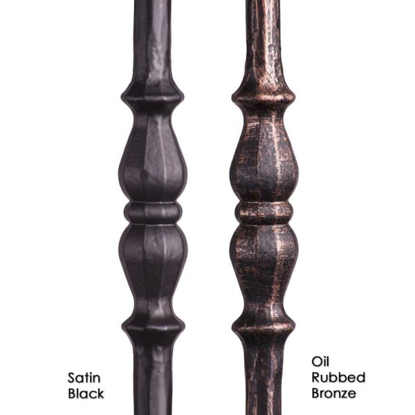 The 2.1.5 Tuscan round series iron baluster features a single 4-1/2″ knuckle. This baluster is solid wrought iron and is 9/16″ round on the ends. It uses the shoes for the nine sixteenth inch balusters 16.3.26 and 16.3.27. This single knuckle baluster pairs with all other Tuscan round series balusters.
