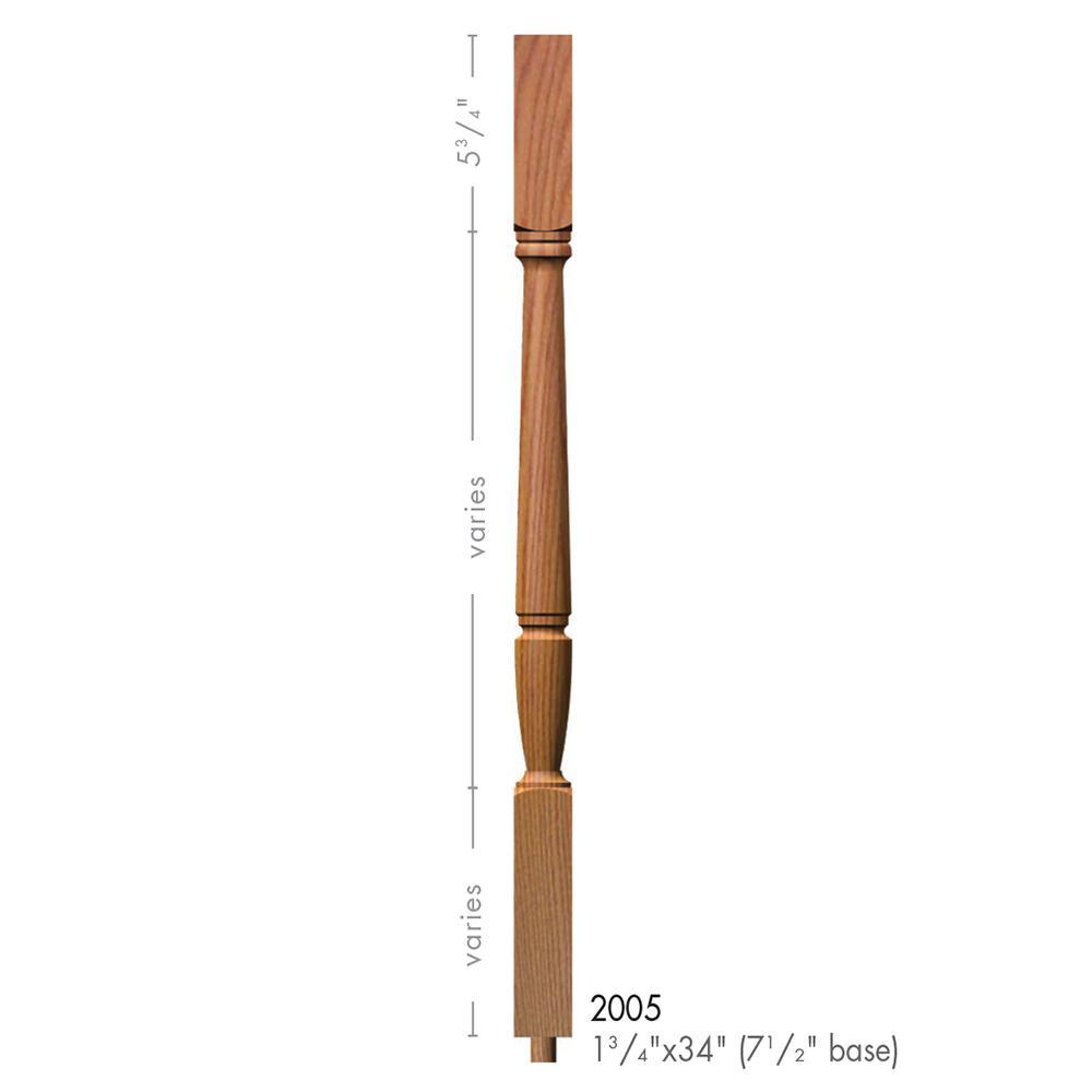 The 2005-34 is a Bunker Hill style solid wood baluster. It is available in a plain, fluted, twisted, and octagonal style milling. This baluster is 34 inches tall and 1-3/4 inches wide.