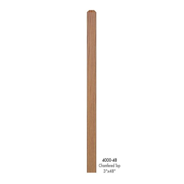 Contemporary Style 4000-60 solid chamfered top newel post comes in a variety of wood species. It is available in a plain style milling. This newel is used in a post-to-post system.