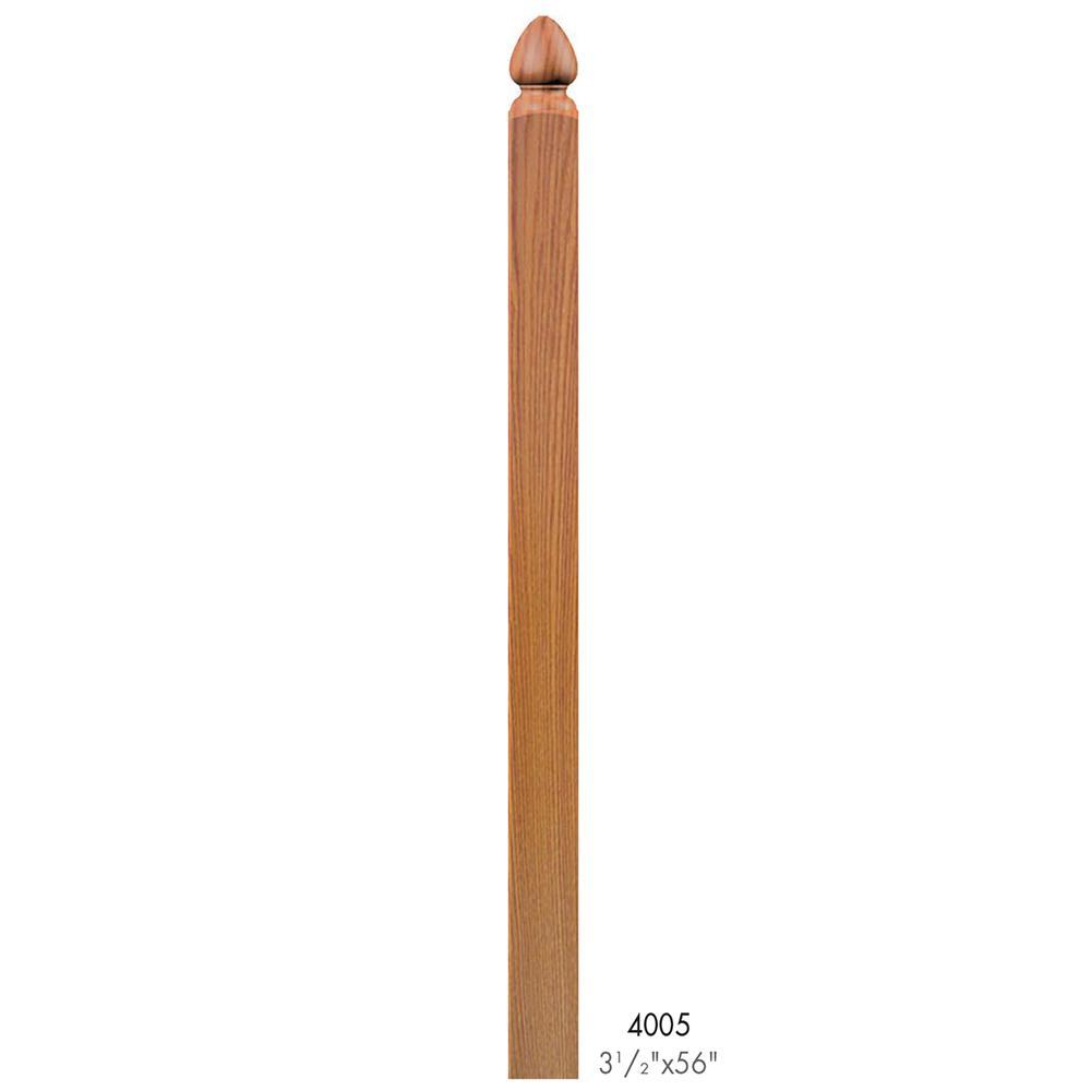 This 4005 solid second floor newel post comes in a variety of wood species. It is available in a plain style milling. This newel is used in a post-to-post system.