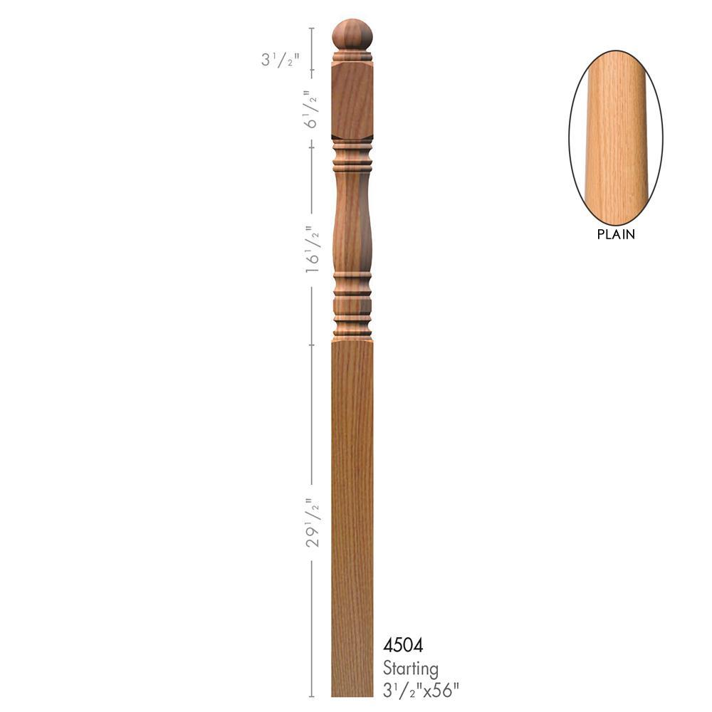 This 4504 solid starting newel post comes in a variety of wood species. It is available in a plain and octagonal style milling. This newel is used in an post-to-post system.