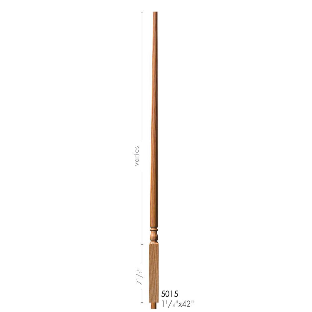 The 5015-42 is a Colonial style solid wood baluster. It is available in a plain and fluted style milling. This baluster is 42 inches tall and 1-1/4 inches wide.