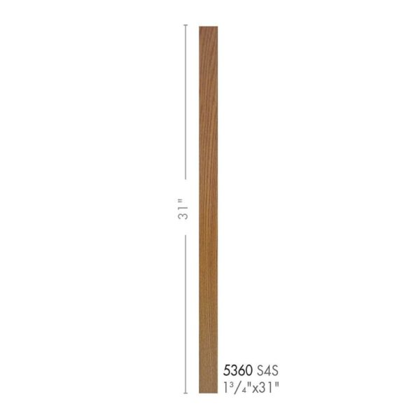 The 5360-31 is a Contemporary style solid S4S wood baluster. It is available in a plain style milling. This baluster is 31 inches tall and 1-3/4 inches wide.